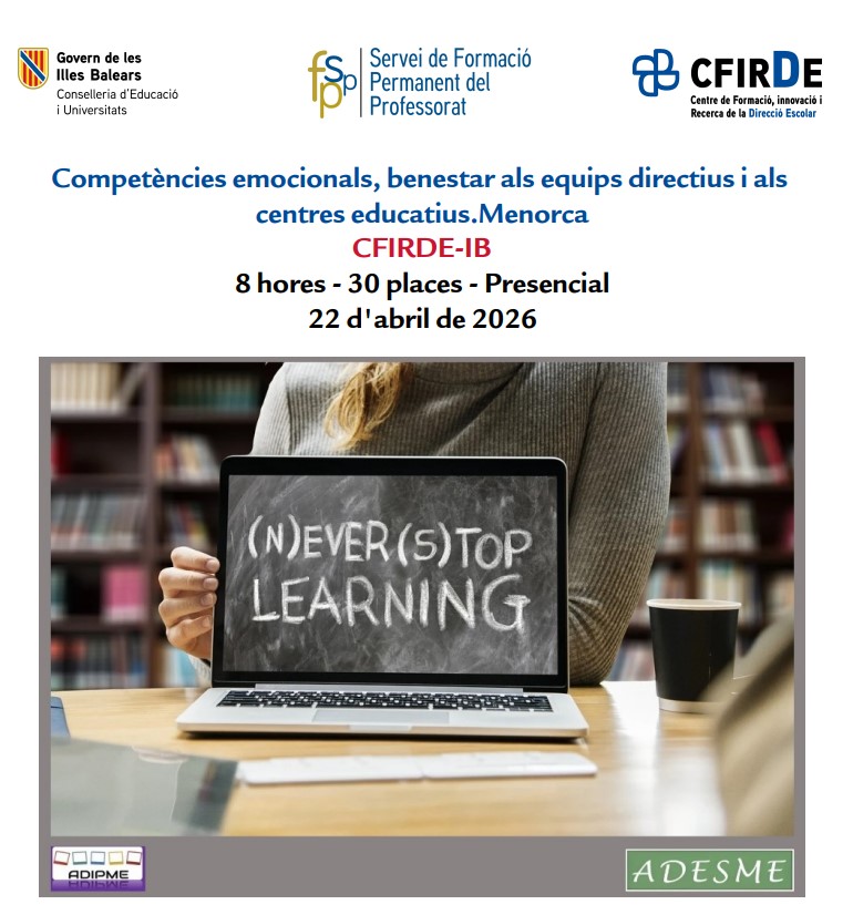 • Formació “Competències emocionals, benestar als equips directius i als centres educatius. Menorca