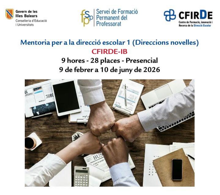 15/01/26Aquesta setmana, directors i directores de diferents centres de les Illes Balears complementen les formacions de Funció Directiva (FD) i d’Actualització de la FD, amb la seva mirada i àmplia formació.